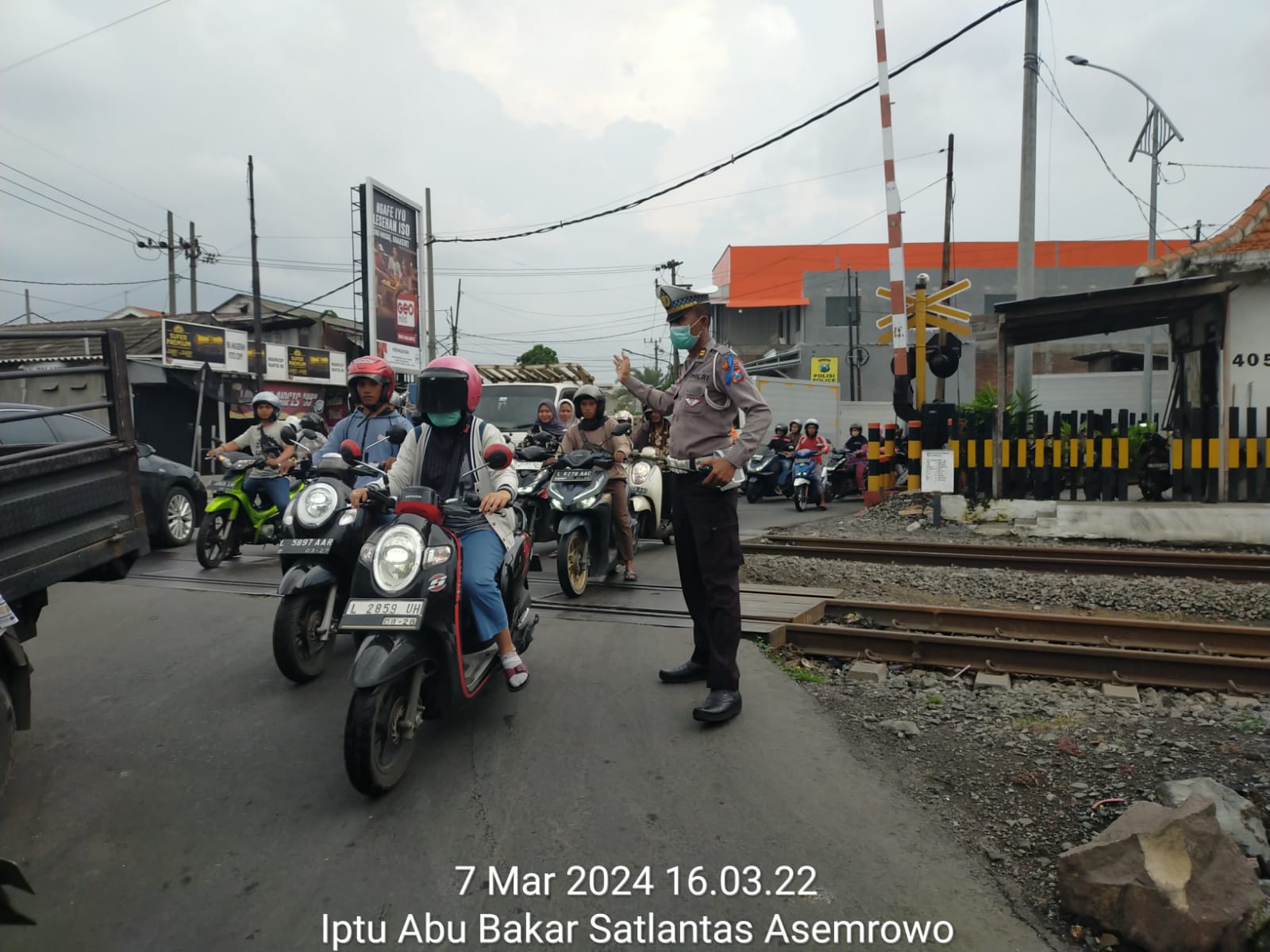 Seputarperak.com- Dalam upaya untuk meningkatkan kelancaran dan keamanan lalu lintas, Polsek Asemrowo melaksanakan giat pos akhir di seputaran perlintasan kereta api Jalan Dupak Rukun, Kamis, 7 Maret 2024. Kegiatan ini bertujuan untuk mengatur arus lalu lintas yang cenderung meningkat di jam-jam tertentu, terutama di jam sibuk pagi dan sore hari.